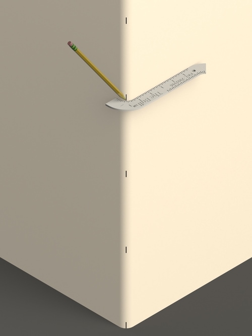Place Painter’s Tool against bullnose corner and wall. Mark your desired paint transition location on the corner every couple feet up and down the entire corner.